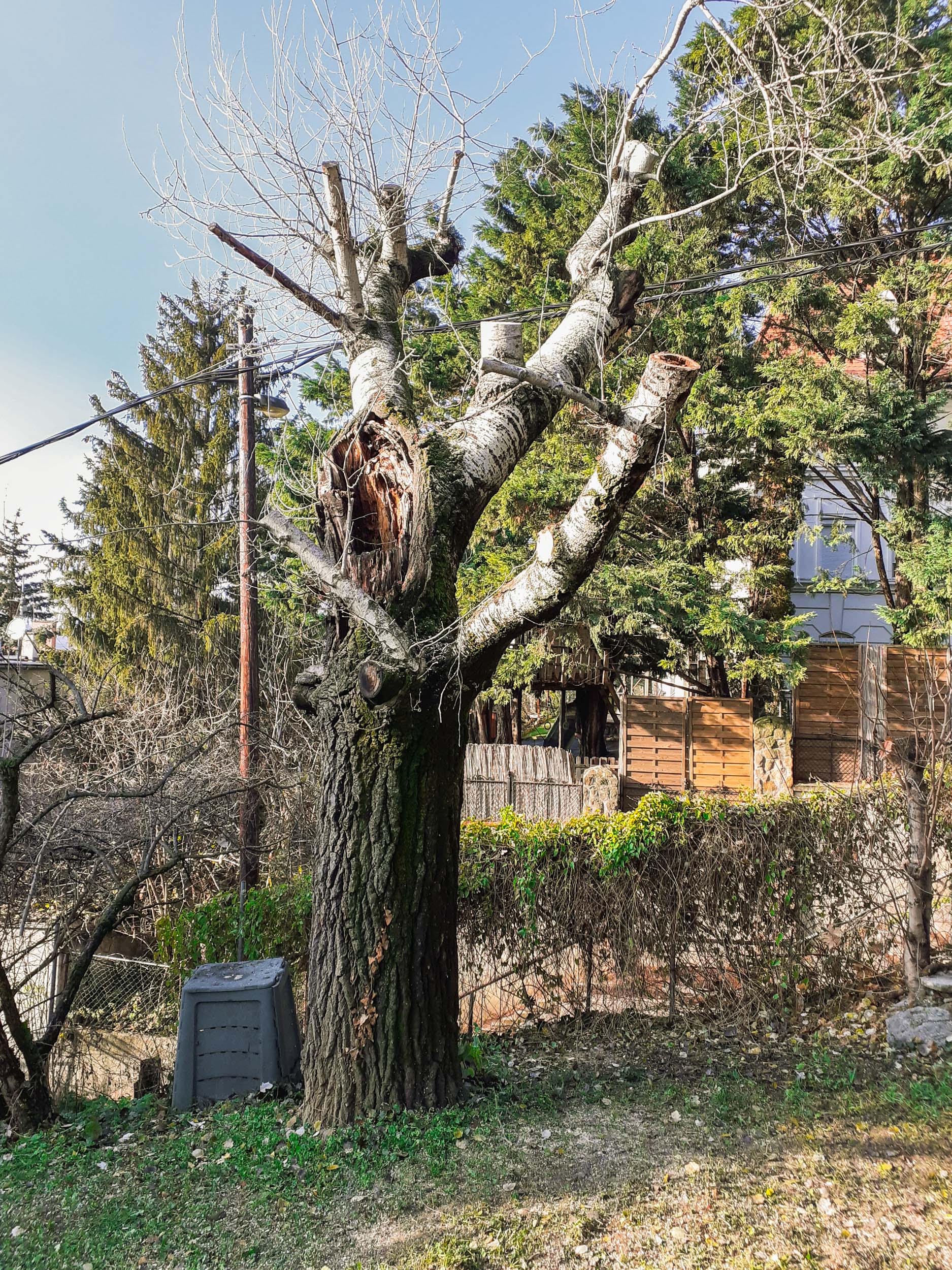 Mostanában gyakrabban látok már olyanokat is, amelyekre törési sérülésnek álcázott, roncsolt sebeket és akár odúkat is fűrészelnek géppel. Néhány ilyen projektben én is részt vettem, végre átélhettem kicsit, milyen lehet a közmű cégek favágóinak lenni és igyekezni minél rondább vágási sebeket gyártani (tisztelet a szomorúan kevés kivételnek). Mókás is volt, meg fura is, mert máskor mindig arra törekszem, hogy minél simább felületű és precízebb metszlapokat készítsek. Az évek során azt tapasztaltam, hogy a természet magától is hamar birtokba vesz egy csonkolt fatorzót, nem muszáj erre fűrészláncot és üzemanyagot áldozni.