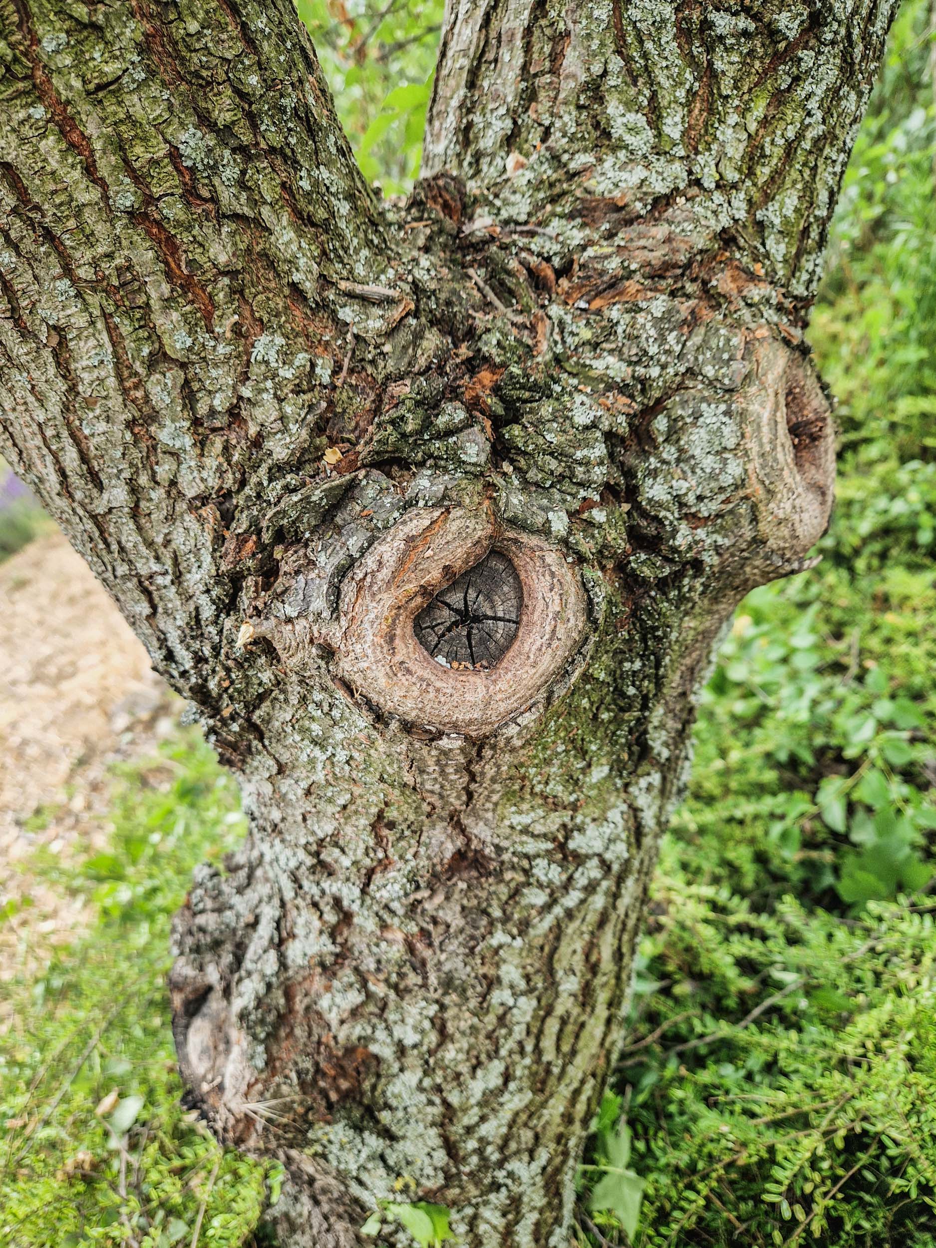 A nagy sebek egész jól állnak a kalluszosodással, a koronája teljesen befoltozta magát azóta és ráállt az ikertörzsű létre.