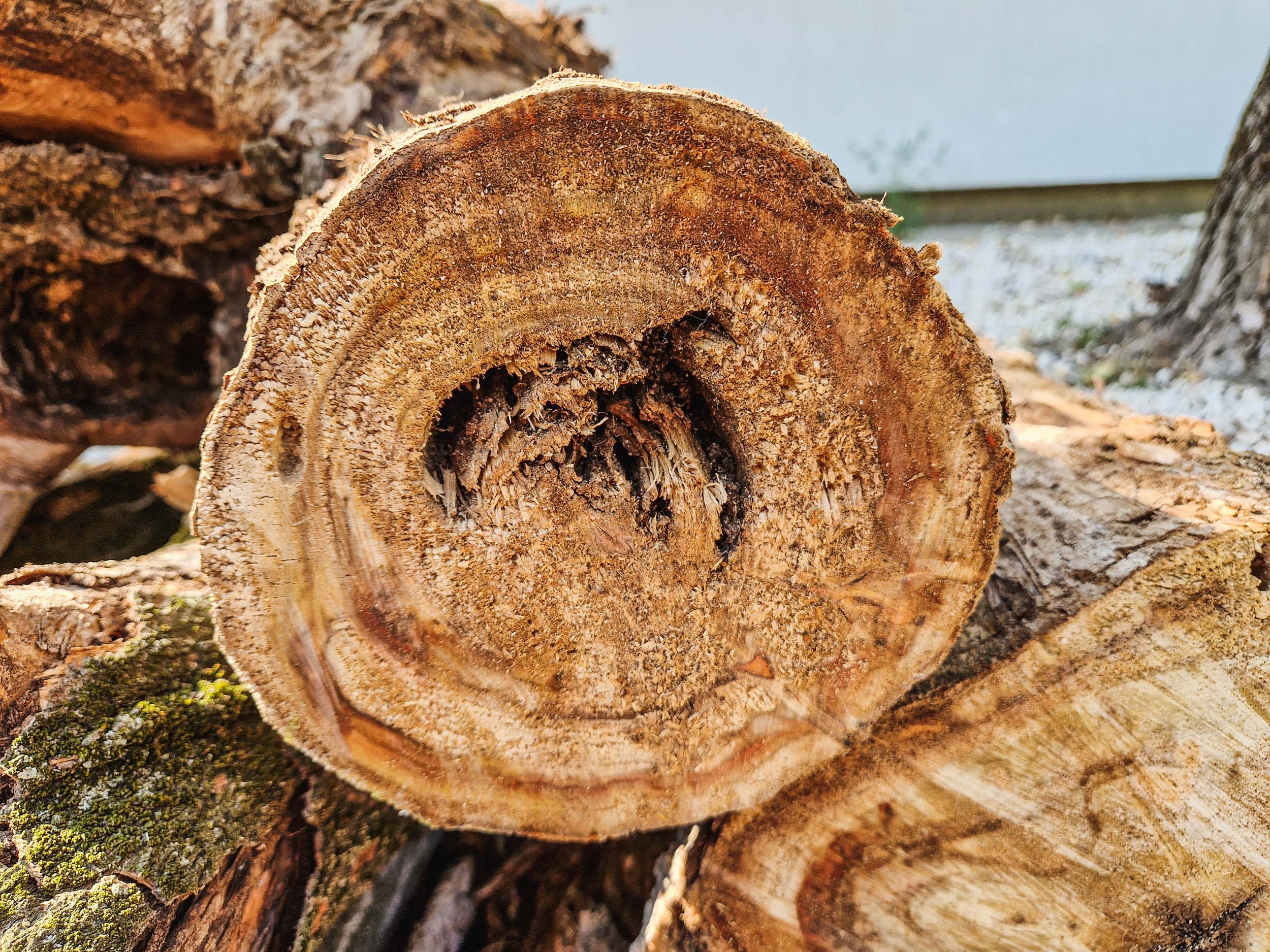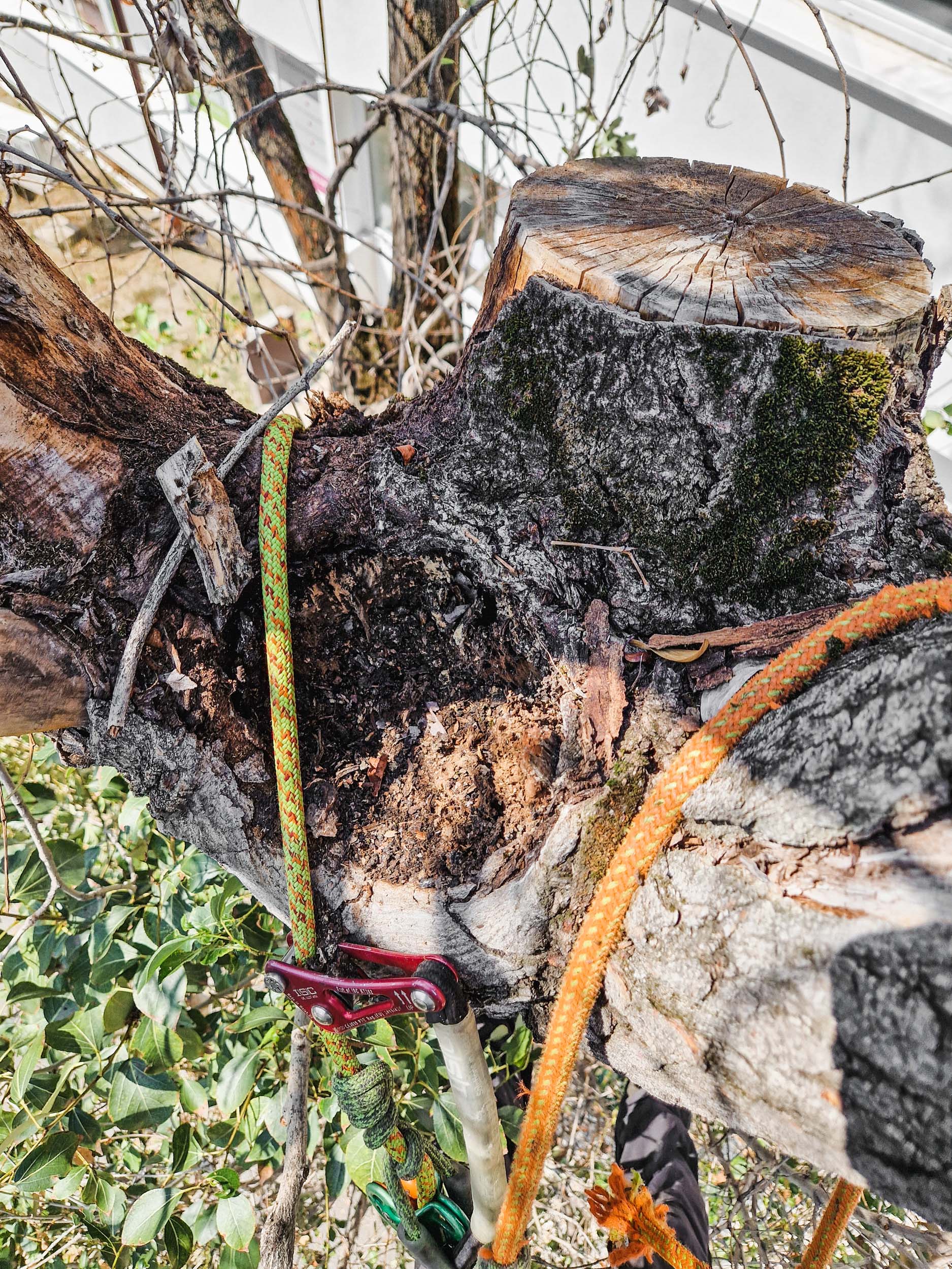 A mászókötél standolása és a húzáspróbák után már nem voltam meggyőzve arról, hogy sokáig velünk lehetnek még, néhányuk túlságosan dülöngél. Kérdezősködtem és beigazolódott a gyanúm: néhány éve murvázták le körülöttük a talajt. A munkálatok során az új szintet a fák eredeti talajszintjénél nagyjából 80 centivel lejjebb ásták, jól letömörítették és 20-30 centin köveket raktak rá mindenféle méretben és formában.